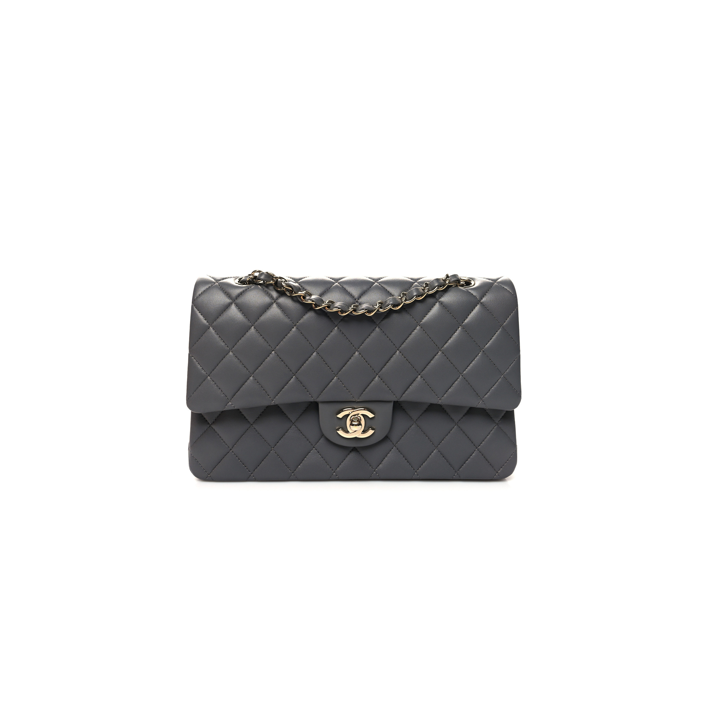 Ch*el lambskin quilted double flap dark grey as1112 (25.5*15.5*6.5cm)