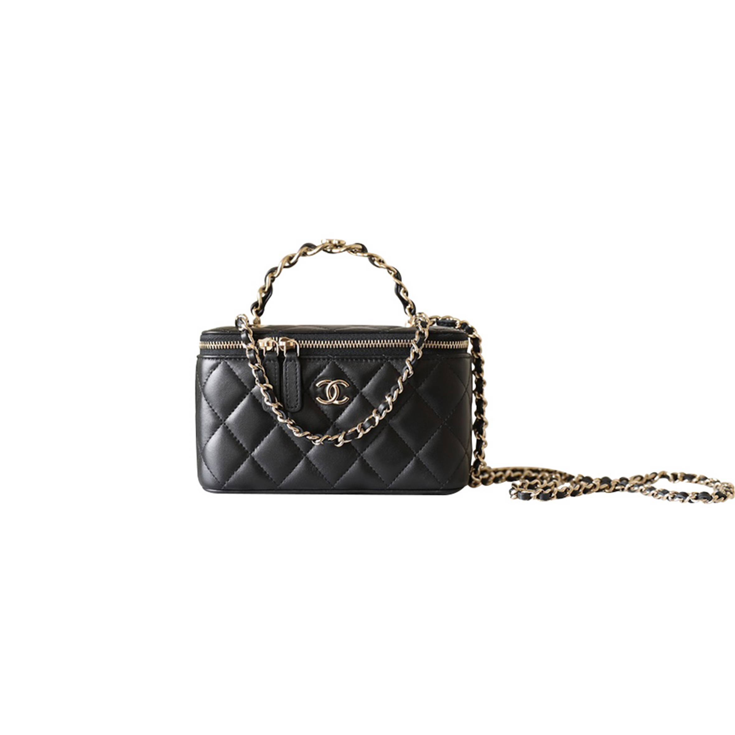 Ch*el master lambskin quilted small vanity case with chain black (17*9*8cm)