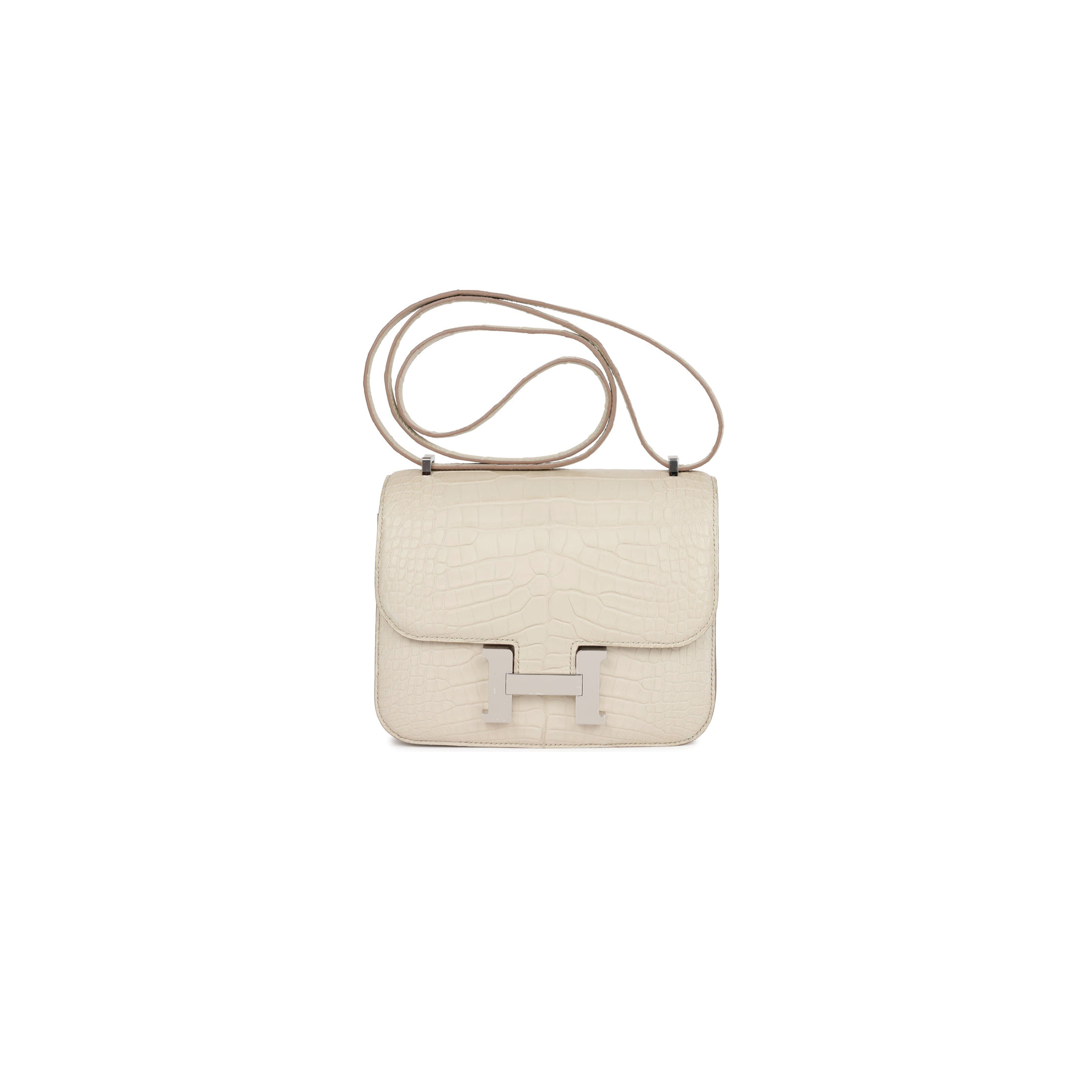 H**mes constance 18 beton matte alligator palladium hardware (18cm)