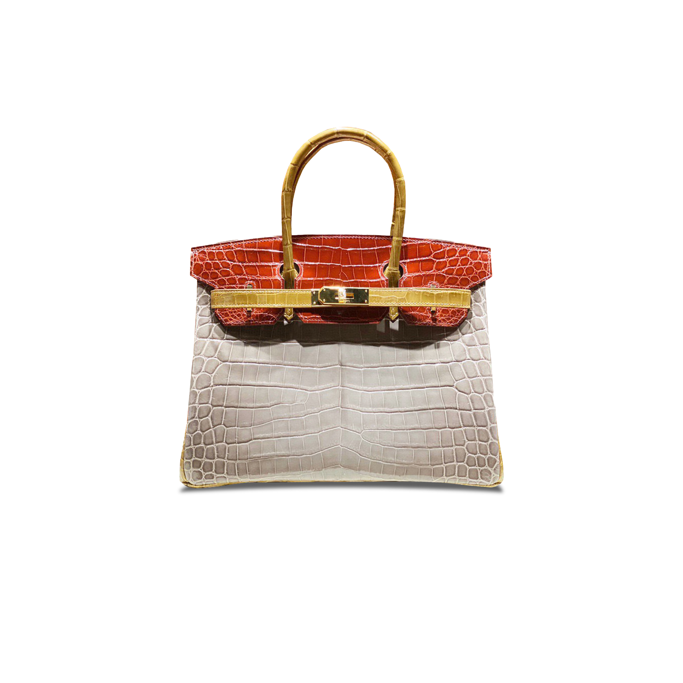 H**mes master birkin 25 crocodile leather tricolor bag gold buckle h041354ck56 (25*20*13cm)